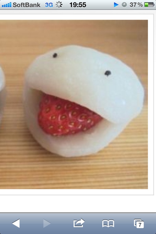 妖怪イチゴ大福だそうな。可愛い!食べてみたい!( ` )