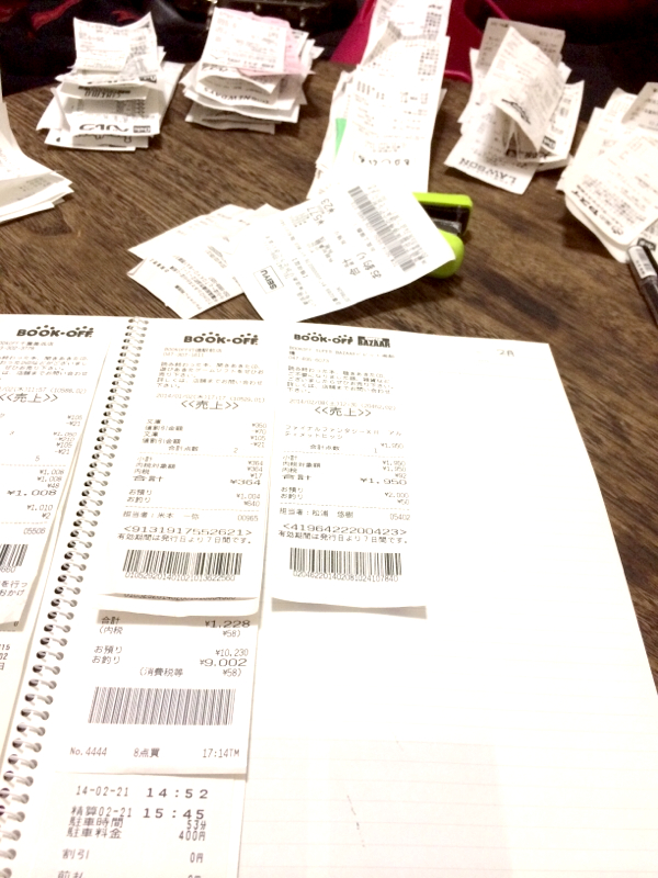 二人で今年三ヶ月分のレシート整理中ー!