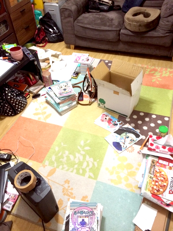部屋の掃除中。